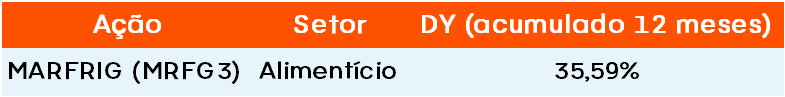 Abaixo, podemos perceber que apenas uma empresa apresentou o DY acumulado nos últimos 12 meses superior a 15% ao ano (1,17% ao mês), ou seja, que superou a taxa Selic: