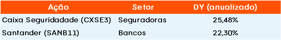 Além dos números dos Dividend Yields (DY) acumulados nos últimos 12 meses, é importante também analisar os pagamentos em um horizonte de curtíssimo prazo, considerando o último pagamento da ação de forma anualizada, ou seja, observando o último provento pago pelo ativo e transformando, hipoteticamente, para 12 meses. Isso reforça que há fundos atualmente oferecendo uma rentabilidade atrativa, especialmente quando comparada ao patamar atual da Selic. A seguir, apresentamos uma lista de ações que possuem um DY anualizado superior a 15%.