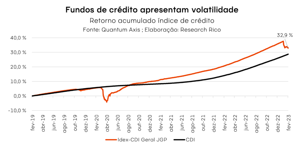 No Brasil, esse aumento da incerteza encontrou um cenário já volátil no mercado de crédito, desencadeado pela inconsistência contábil da Americanas. Os eventos, aliados a outras empresas que viram suas notas de crédito rebaixadas, levaram a ondas de resgates em fundos de renda fixa, alimentando a volatilidade no mercado doméstico.