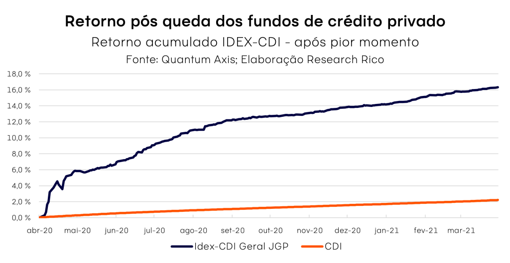 Para muitos gestores, a queda ocorrida em 2020 foi a pior crise do século do mercado de crédito – impulsionada por uma crise de liquidez, sendo que os fundamentos das empresas não foram impactados nesse cenário.