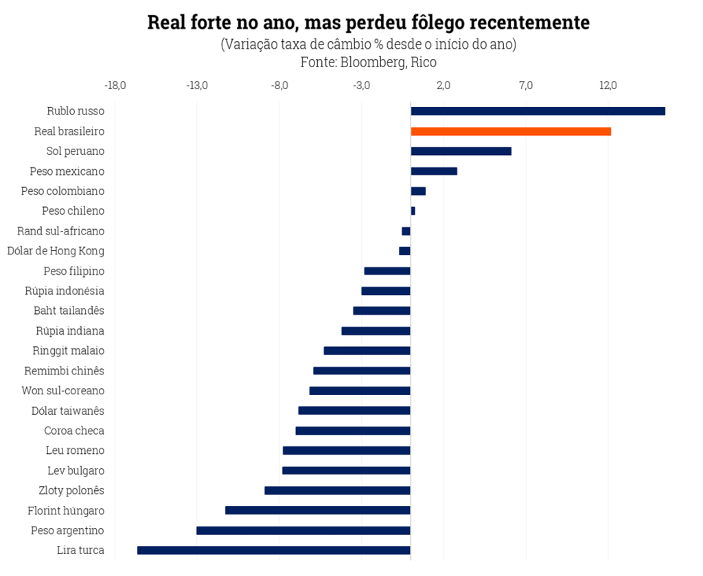 Como detalhamos aqui, o real foi um dos grandes destaques entre moedas globais no início deste ano.