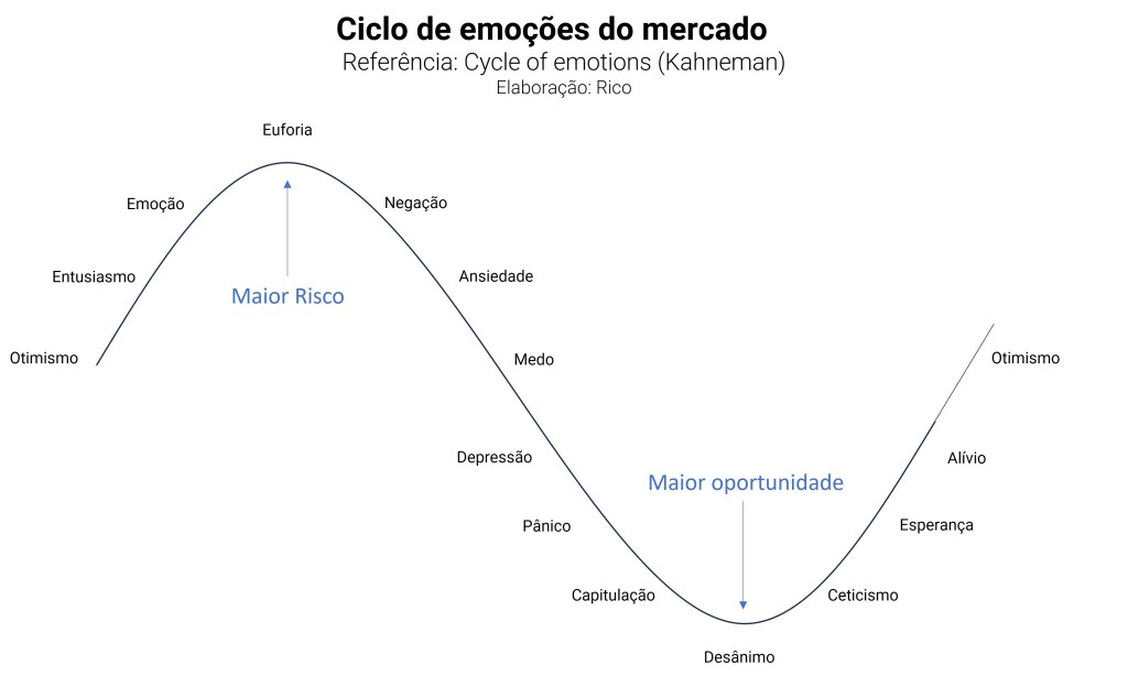 Investir no mercado de ações pode ser um verdadeiro passeio de montanha-russa emocional. E infelizmente (ou não), o fator emocional tem um peso gigantesco nas decisões de investimento. Porém, para aquelas pessoas que conseguem compreender os ciclos de emoções que movem o mercado, isso pode não ser uma má notícia. Afinal, nos momentos de maiores incertezas, podem surgir oportunidades nos mercados.