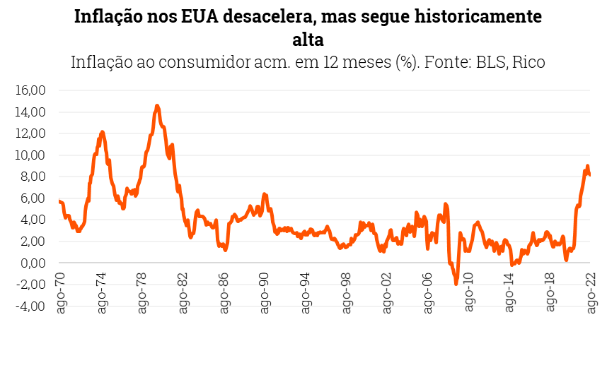 Dito isso, a inflação segue alta para padrões históricos e muito longe das metas dos Bancos Centrais em economias desenvolvidas. E assim, um desafio para o crescimento e estabilidade econômica globais.