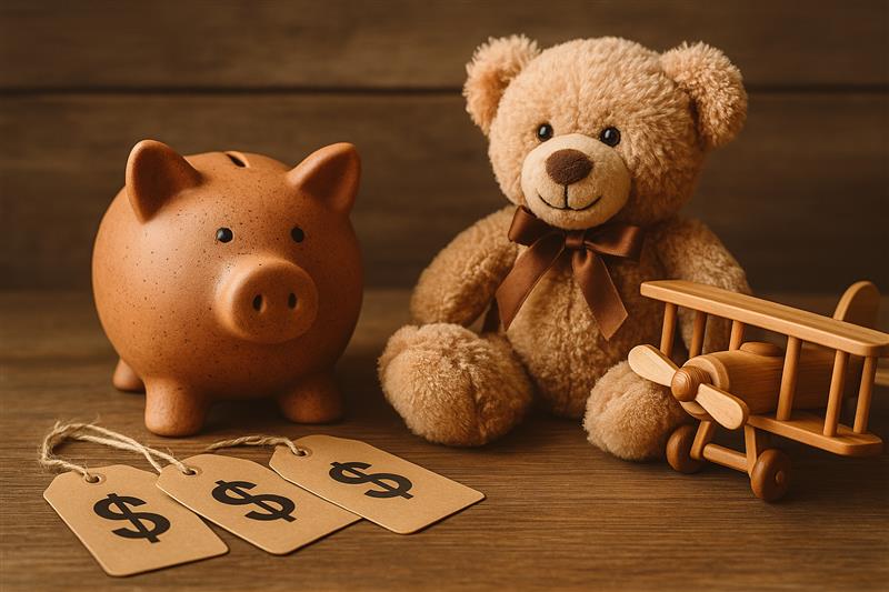 - Brinquedos simples e roupas infantis ajudaram a aliviar a conta.