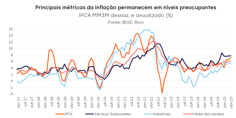 Como vimos, o resultado de abril ilustrou que a inflação deve seguir como um dos principais desafios na conjuntura atual.