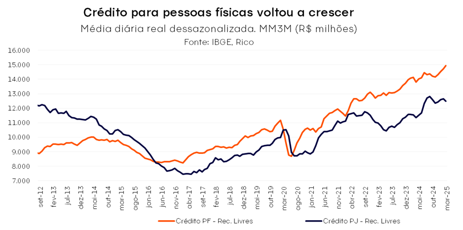 O mercado de crédito também aquecido reforça a pressão sobre os preços, embora deva perder força ao longo do ano. Vale destacar que o Banco Central deve elevar a taxa Selic até 15,0% em junho (como destacamos adiante); porém, que alterações na taxa básica de juros demoram para serem sentidas na economia – dinâmica que chamamos de “defasagem da política monetária”.