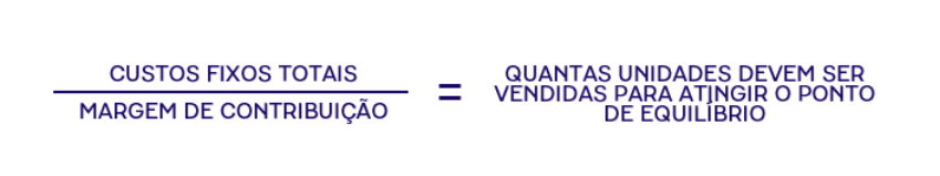 Na prática, o ponto de equilíbrio ocorre quando o faturamento total é suficiente para cobrir os custos fixos e variáveis. A fórmula é simples: divida os custos fixos totais pela margem de contribuição por unidade (valor que sobra por doce, como vimos anteriormente). O resultado mostra quantas unidades devem ser vendidas para atingir o famoso “zero a zero”, conforme abaixo: