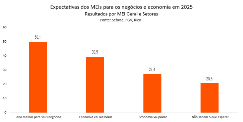 A expectativa para 2025 entre os MEIs é marcada por otimismo cauteloso. Segundo pesquisa realizada pelo Sebrae em parceria com a FGV, uma parcela significativa dos microempreendedores acredita que este será um ano melhor para seus negócios, mesmo diante de um cenário macroeconômico ainda incerto.