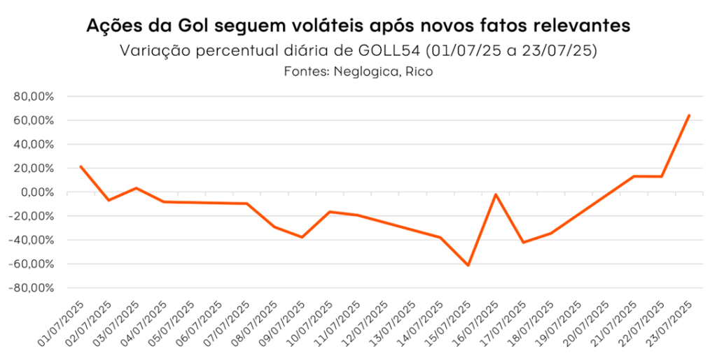 Nas últimas semanas, a GOL Linhas Aéreas (antiga GOLL3/GOLL4) passou por mudanças importantes que causaram fortes oscilações no preço de suas ações. Quer entender o que aconteceu com a empresa e os motivos dessa forte volatilidade? Nesse texto trouxemos um resumo claro e direto para quem quer entender o que está por trás da movimentação recente: