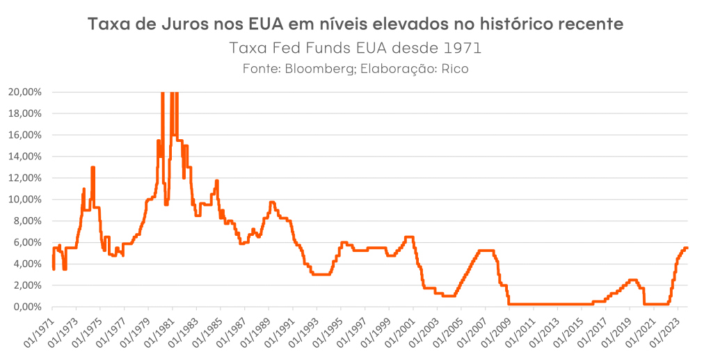 Em 2023, a alta dos juros americanos foi o principal movimento que impactou os mercados, dado sua importância para precificar o valor justo para praticamente todos os ativos.