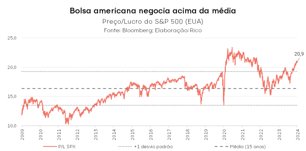 Nem mesmo os múltiplos elevados têm sido o suficiente para derrubar as bolsas americanas. Ou seja, apesar de estarem “caras”, quando comparado ao histórico, as bolsas americanas seguem em alta.