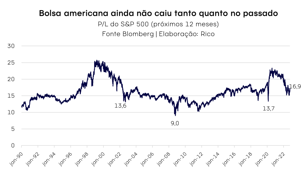 Vale lembrar que, diferente da bolsa brasileira, as bolsas americanas ainda estão valorizadas, não tendo passado por descontos tão fortes quanto o observado em outros momentos de estresse no mercado.