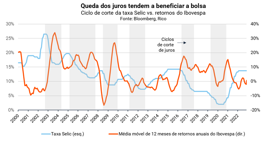 Vale destacar que, embora o Banco Central tenha começado um processo de redução da taxa Selic há alguns meses, os efeitos de mudanças nos juros básicos demoram para ser sentidos na economia. Além disso, entendemos que a Selic deve seguir em território contracionista ao menos até o fim do ano que vem – ou seja, em patamar em que desaquece a economia, com o objetivo de controlar a alta de preços.