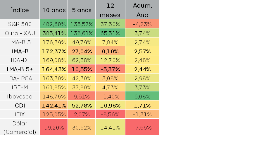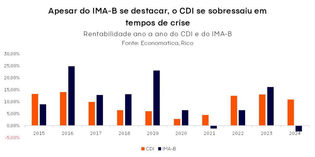 Avaliando os dois índices em questão, ao longo da última década, o IMA-B teve um desempenho superior ao CDI.
