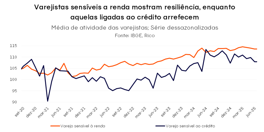 Um exemplo dessa desaceleração é a concessão de crédito para empresas e pessoas físicas, que começou a enfraquecer nos últimos meses, impactando setores mais sensíveis ao crédito, como construção civil, indústria manufatureira e comércio de bens como imóveis, veículos e eletroeletrônicos.
