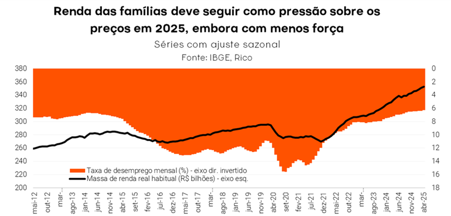 Nesse sentido, vale destacar que, diante de uma taxa de desemprego que segue historicamente baixa, o rendimento médio do trabalho continua a subir acima da inflação.