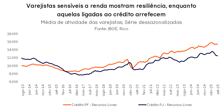 Um exemplo dessa desaceleração é a concessão de crédito para empresas e pessoas físicas, que começou a enfraquecer nos últimos meses, impactando setores mais sensíveis ao crédito, como construção civil, indústria manufatureira e comércio de bens como imóveis, veículos e eletroeletrônicos.