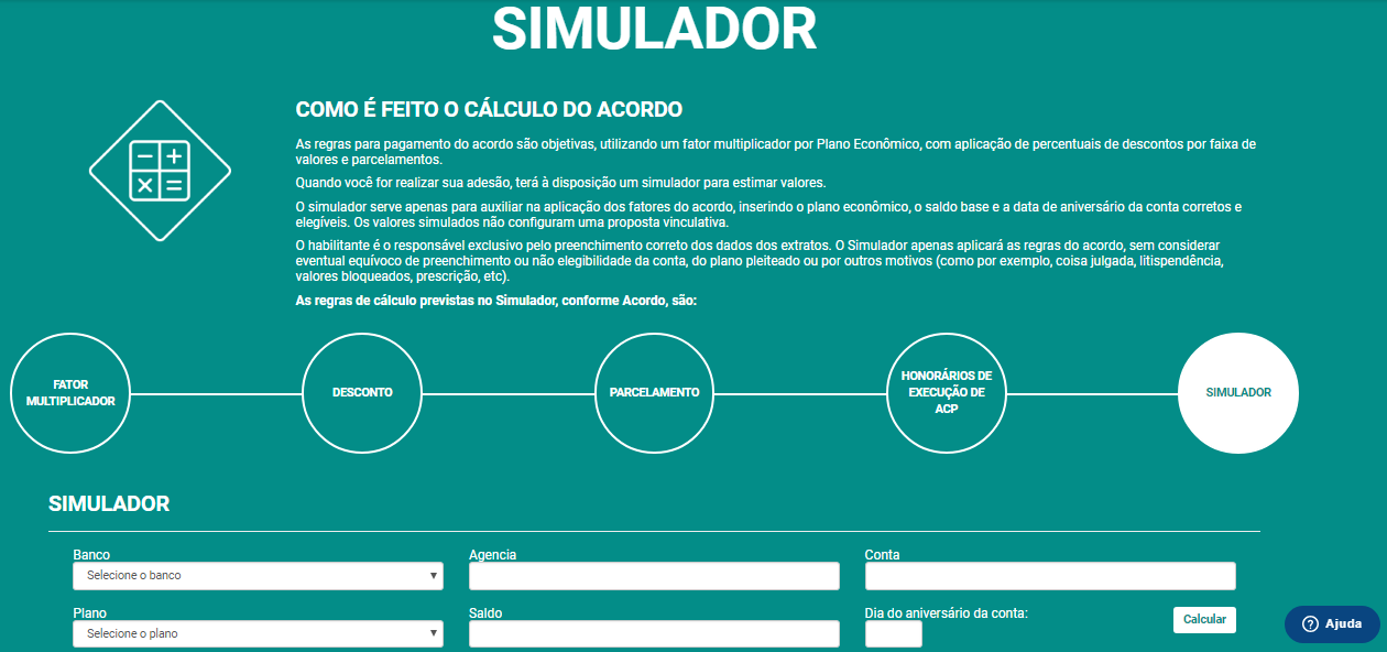 - Acordo não aceito: se você não concordar com o valor calculado pelo banco;