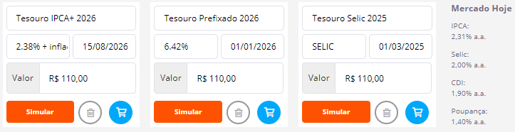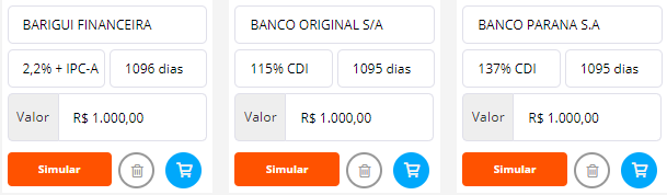 Caso você tenha aporte em torno de R$ 1 mil, já há mais opções de investimento, como algumas LCI/LCAs e os CDBs, que são títulos de renda fixa privados.
