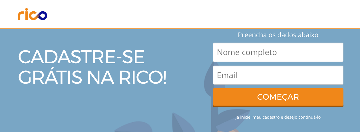 O primeiro passo é pesquisar por uma corretora de valores de confiança, como a Rico. Aqui, seu cadastro é gratuito e pode ser feito em menos de 10 minutos. Dessa forma, você conta com diversos benefícios, como: