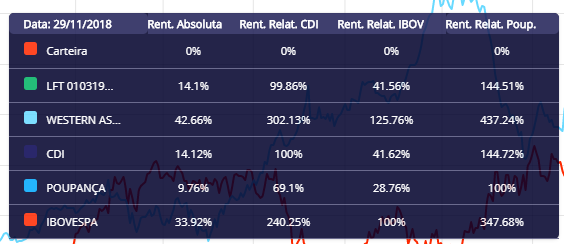 Existe uma forma de comparar o histórico de rentabilidade de todos os fundos e investimentos, lado a lado, em gráfico.