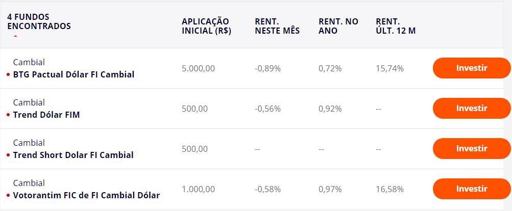 Se o seu objetivo é obter rendimento pela variação cambial, existem outras duas opções além do fundo de câmbio. Veja abaixo: