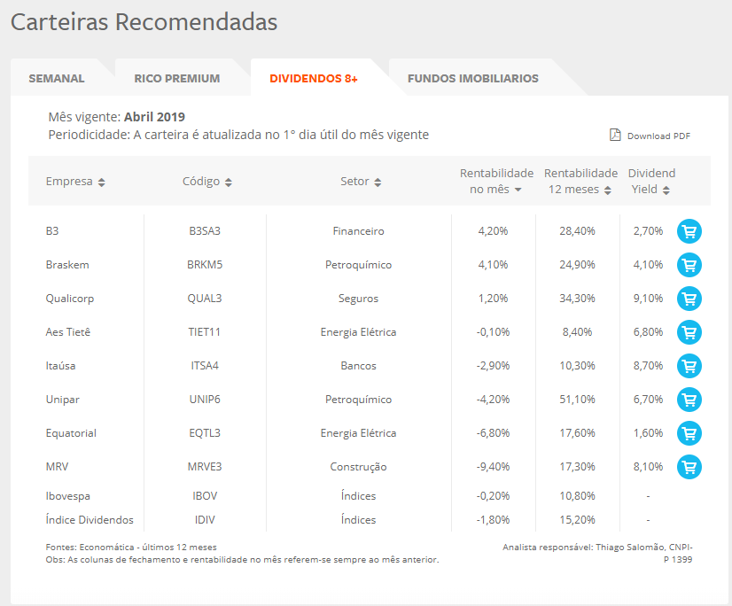 Na Rico, nós montamos uma carteira que é atualizada mensalmente, com as melhores empresas pagadoras de dividendos.
