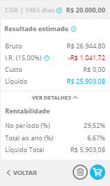 Então, um CDB que rende 120% do CDI apresenta um rendimento 20% acima desse índice, por exemplo. Ao supor que o CDI seja de 10%, você terá uma rentabilidade bruta de 12% (sem descontar o Imposto de Renda).