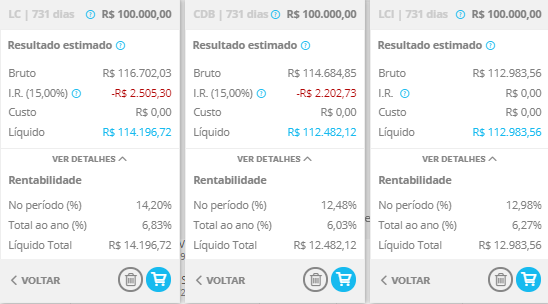 Como você percebeu, dividimos as possibilidades entre objetivos e seus prazos. No entanto, não basta escolher o mesmo tipo de aplicação e alterar apenas a data de vencimento.