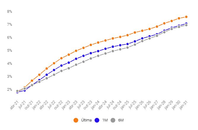 No mercado de renda fixa, a curva de juros, que reflete as expectativas do mercado para o CDI em diferentes prazos, ‘abriu’ em praticamente todos os vértices, demonstrando expectativa de alta da Selic seguindo o fim do forward guidance* e a visão de que o Banco Central deve voltar a subir juros ainda no primeiro semestre (leia mais aqui).