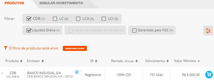 Também existem outros CDB’s com maior rendimento para resgate após 90 dias ou mais.