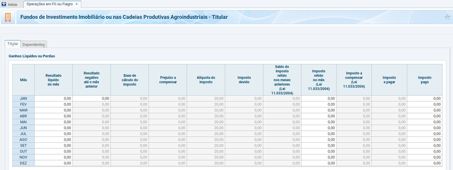 - Informe o IR retido na fonte e o imposto pago via Darf em cada mês no quadro “Consolidação do Mês”.