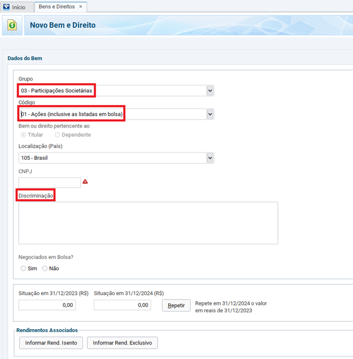 - Se papéis tiverem sido adquiridos em 2024, o primeiro campo deve ser preenchido com “zero”.