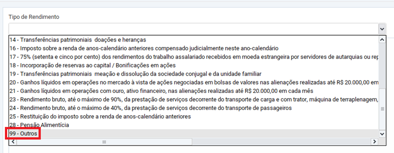 - No campo “Valor”, informe a soma total dos rendimentos.