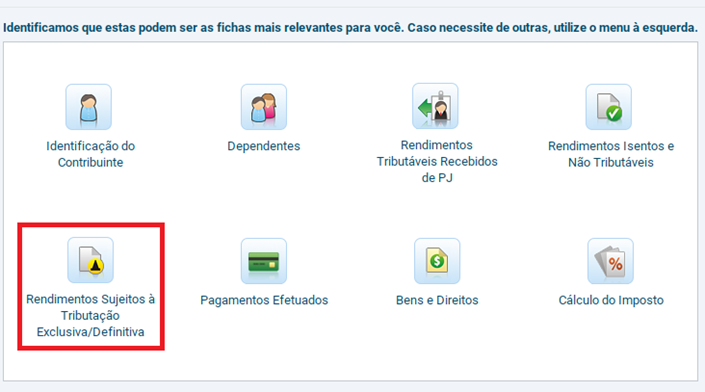 - Acesse “Rendimentos sujeitos à Tributação Exclusiva/Definitiva”;