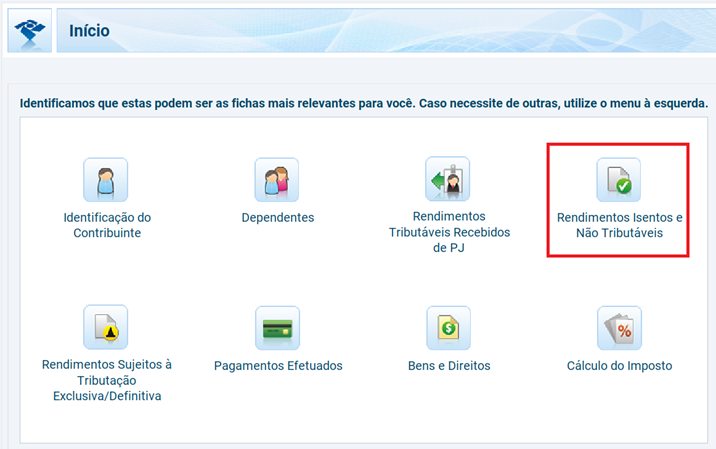 - Acesse “Rendimentos Isentos e Não Tributáveis”;
