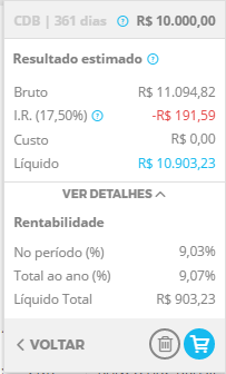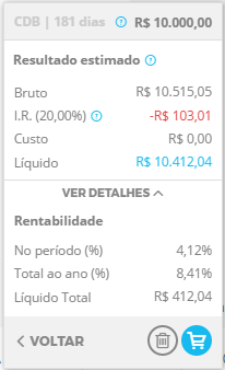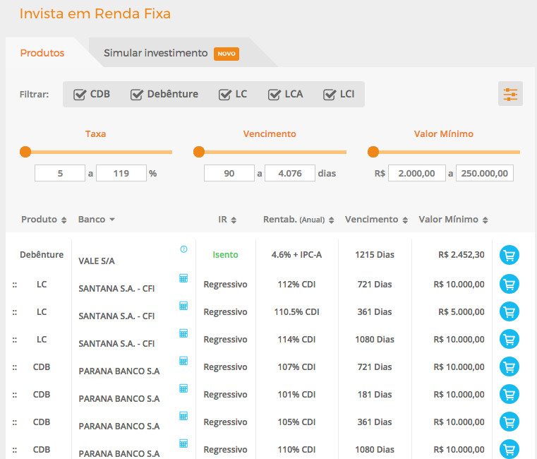 4. Verifique as opções de CDBs disponíveis para investir. Utilize também o nosso Simulador de Investimentos para saber o quanto seu dinheiro poderá render em cada um dos CDBs desejados;