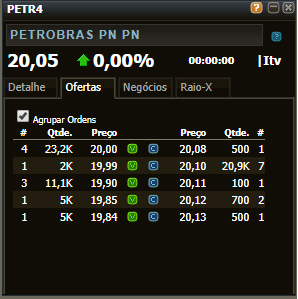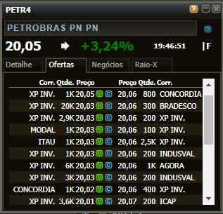 - Book de ofertas: ele mostra as intenções de compra e venda de ações. Através dele, você vê as ordens que aguardam a execução e os seus respectivos volumes.